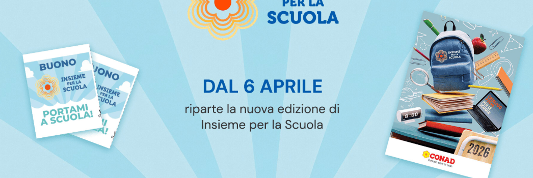 La scuola e i clienti Conad potranno caricare i buoni fino al 30 giugno 2026, in modo semplice e immediato, tramite l’App Insieme per la Scuola 2026, disponibile gratuitamente su App Store e Google Play.