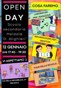 HomeSlide news In primo pianoOPEN DAY SCUOLA SECONDARIA OPEN DAY SCUOLA SECONDARIA Categorie In primo piano Slide news Data: 16/12/2025 SIAMO LIETI DI INVITARE GLI ALUNNI ALL’OPEN DAY DELLA SCUOLA SECONDARIA Volantino Open Day Secondaria OPEN DAY SCUOLA DELL’INFANZIA STATALE DI MELDOLA